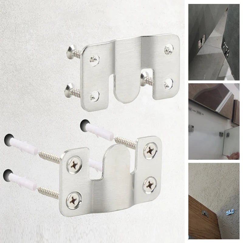 【Easy To Install】Just fix one hanging buckle on the wall with long screws with the bulge face up and fix another hanging buckle on the furniture by screws with the bulging face down, finally Interlocking mount them.
