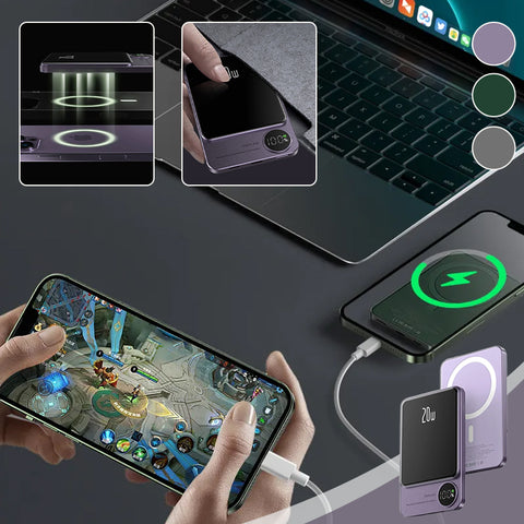 10mm Ultra-thin Aluminum Alloy: Magnetic wireless power bank High-quality texture, thickness of only 9mm(5000mAh).